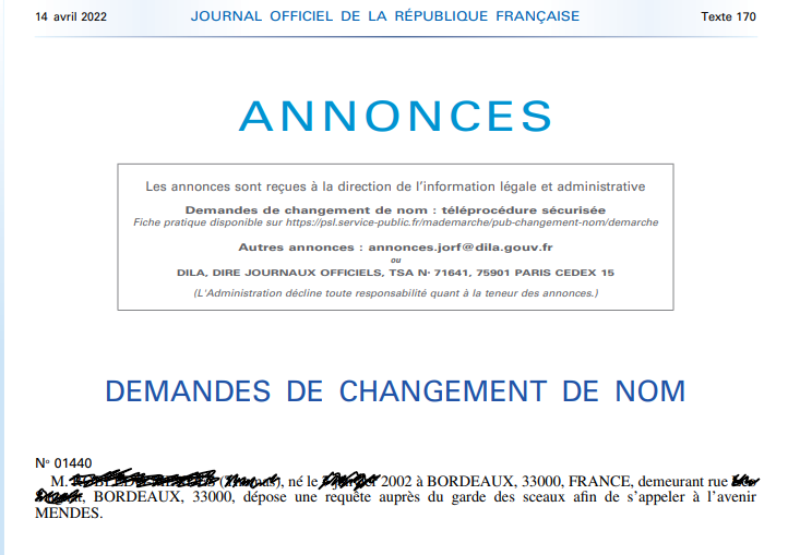 Une mention de changement de nom sera également apposée sur l’acte de naissance du demandeur.