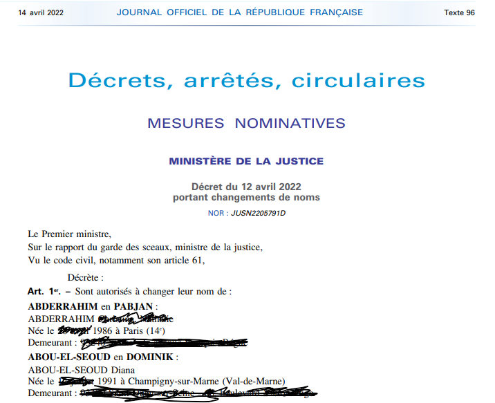 La procédure de changement de nom de famille fondé sur un intérêt légitime (changement par décret)